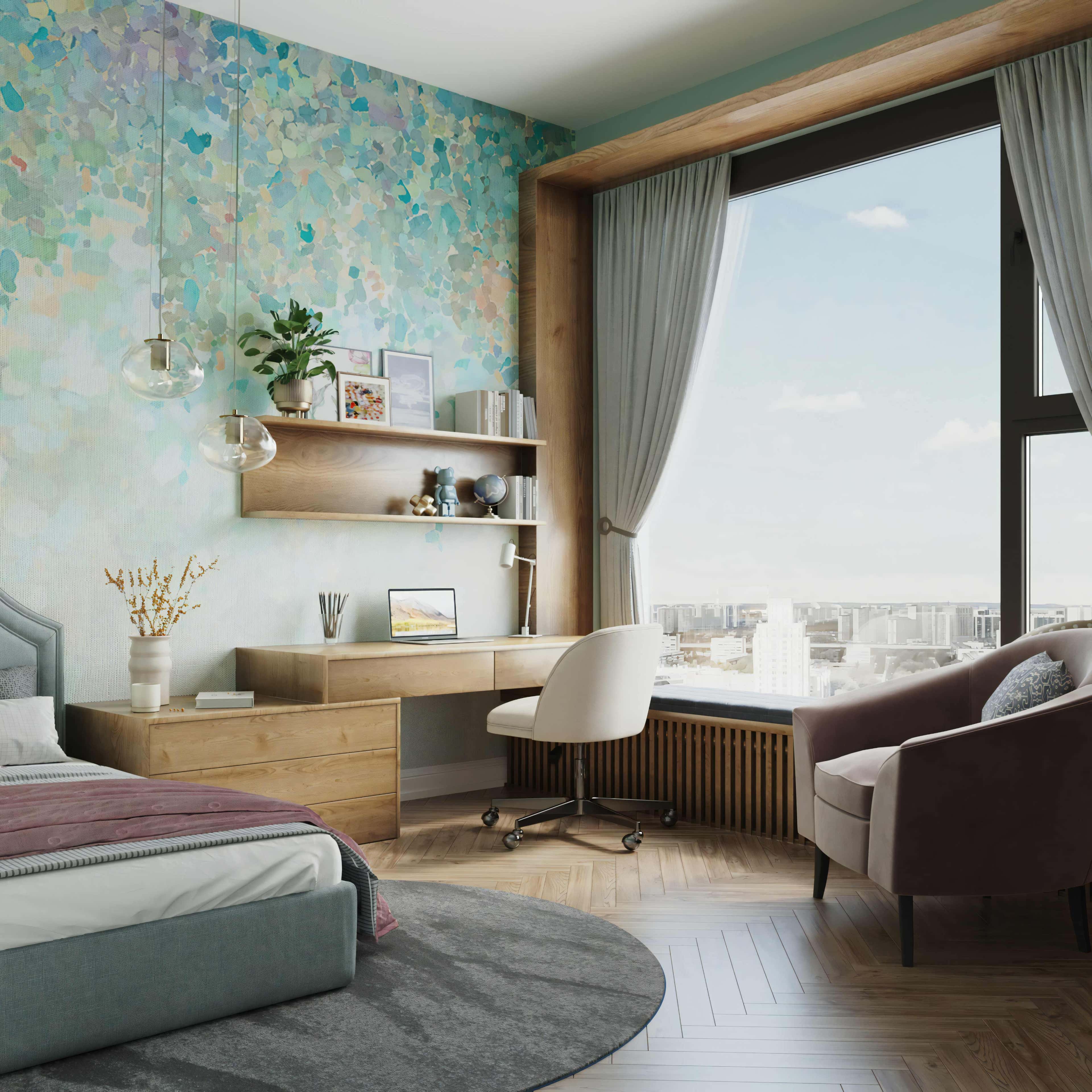 Зонирование в просторной кухне-гостиной выполнили с помощью мебели и светильников. Тепла добавили за счет интеграции в обстановку натурального дерева и авторского текстиля с интересной фактурой и броскими принтами. А в дизайне приватных помещений кабинета, детской и спальни отразили черты характера и образ жизни хозяев.