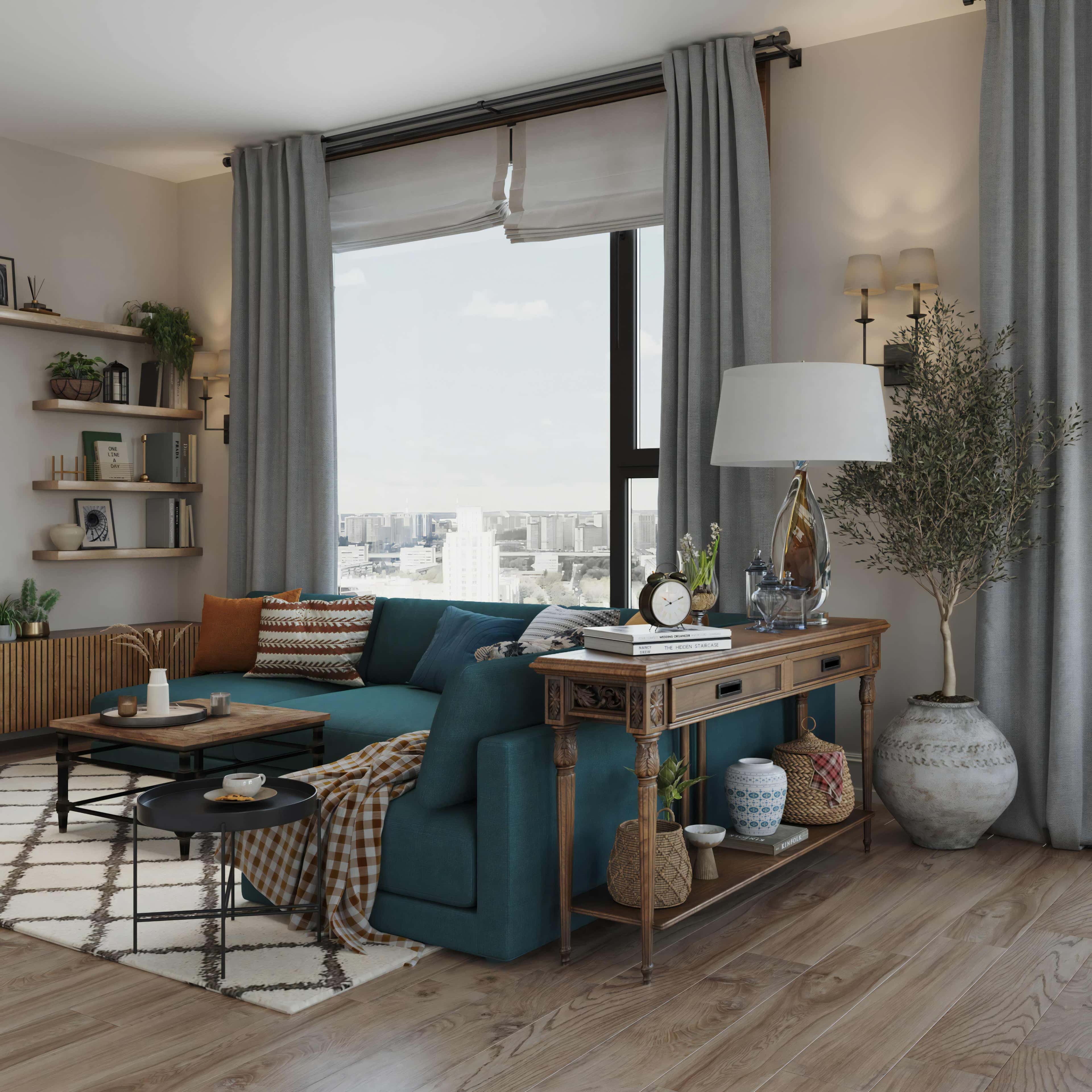 Эклектичный интерьер 4-х комнатной квартиры площадью 124 м² в ЖК «Композиция № 24» для семьи из трех человек впечатляет обилием интересных деталей. В нем органично сочетаются винтажные предметы, элементы в стилистике эко, классические и современные предметы, создавая уникальный ансамбль с яркой индивидуальностью.