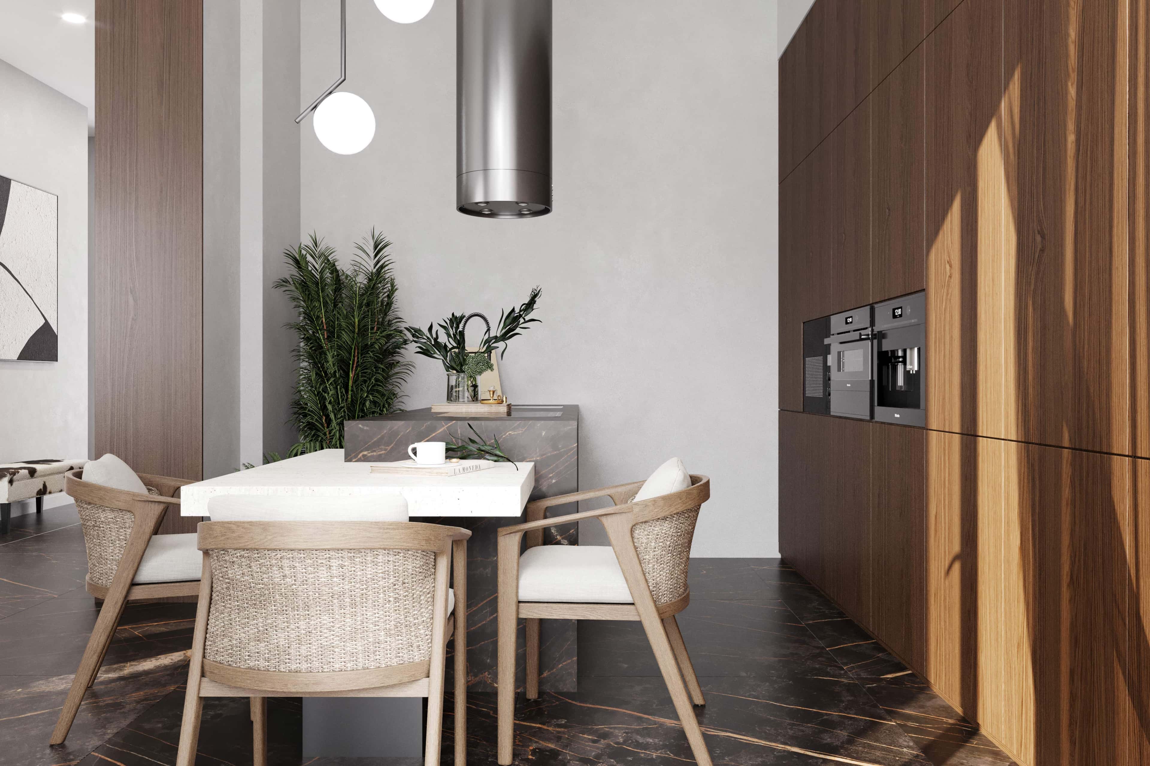Деревянные панели, красивый мрамор, открытая планировка — этот современный двухэтажный частный дом в КП «Новогорск Клаб» впечатляет с первого взгляда. Приватные помещения на втором этаже оформлены в едином ключе, но при этом в каждой комнате есть своя изюминка. А главным украшение просторной гостиной с панорамными окнами на первом этаже стал оригинальный подвесной камин с дровницей, которая может использоваться как столик.
