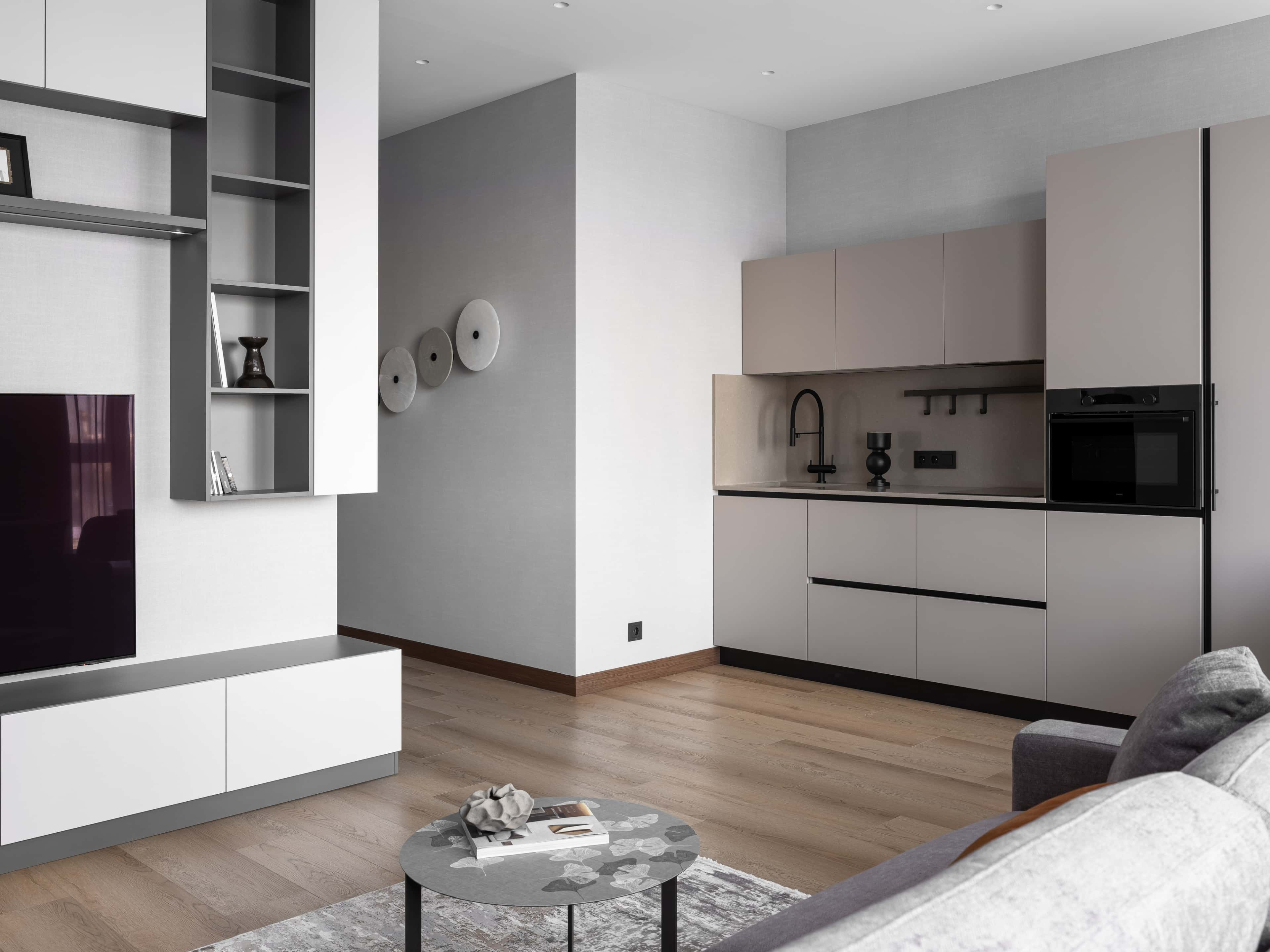 Хозяин квартиры 60 м² в ЖК «Кристалл» планировал сдавать ее в аренду, но после ремонта, увидев результат, решил жить там сам. Запрос был на практичную, уютную и функциональную обстановку, поэтому для проекта выбрали современный стиль и износостойкие отделочные материалы с улучшенными эстетическими характеристиками.