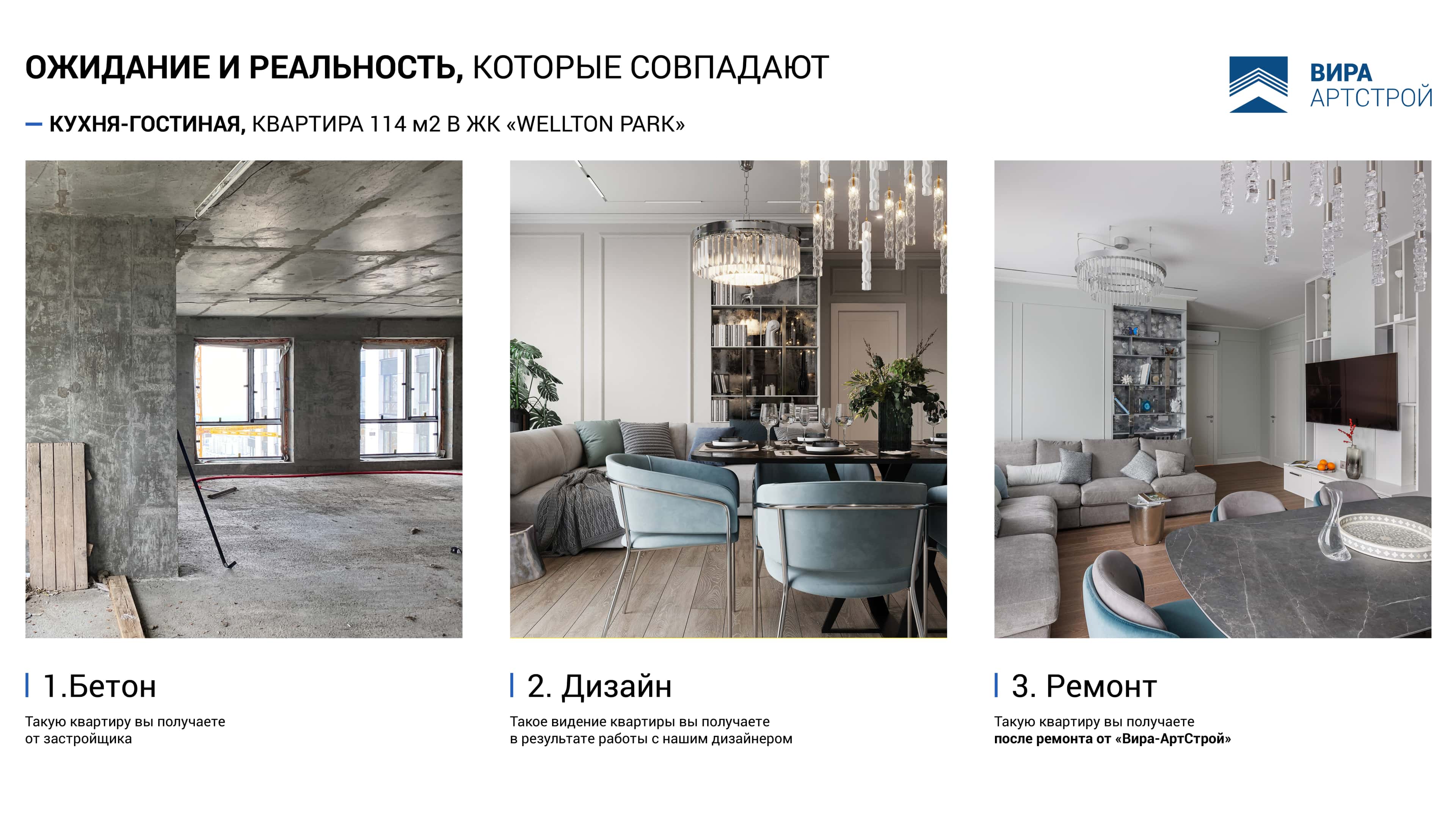 Капитальный ремонт квартиры 114 м² в ЖК Wellton Park