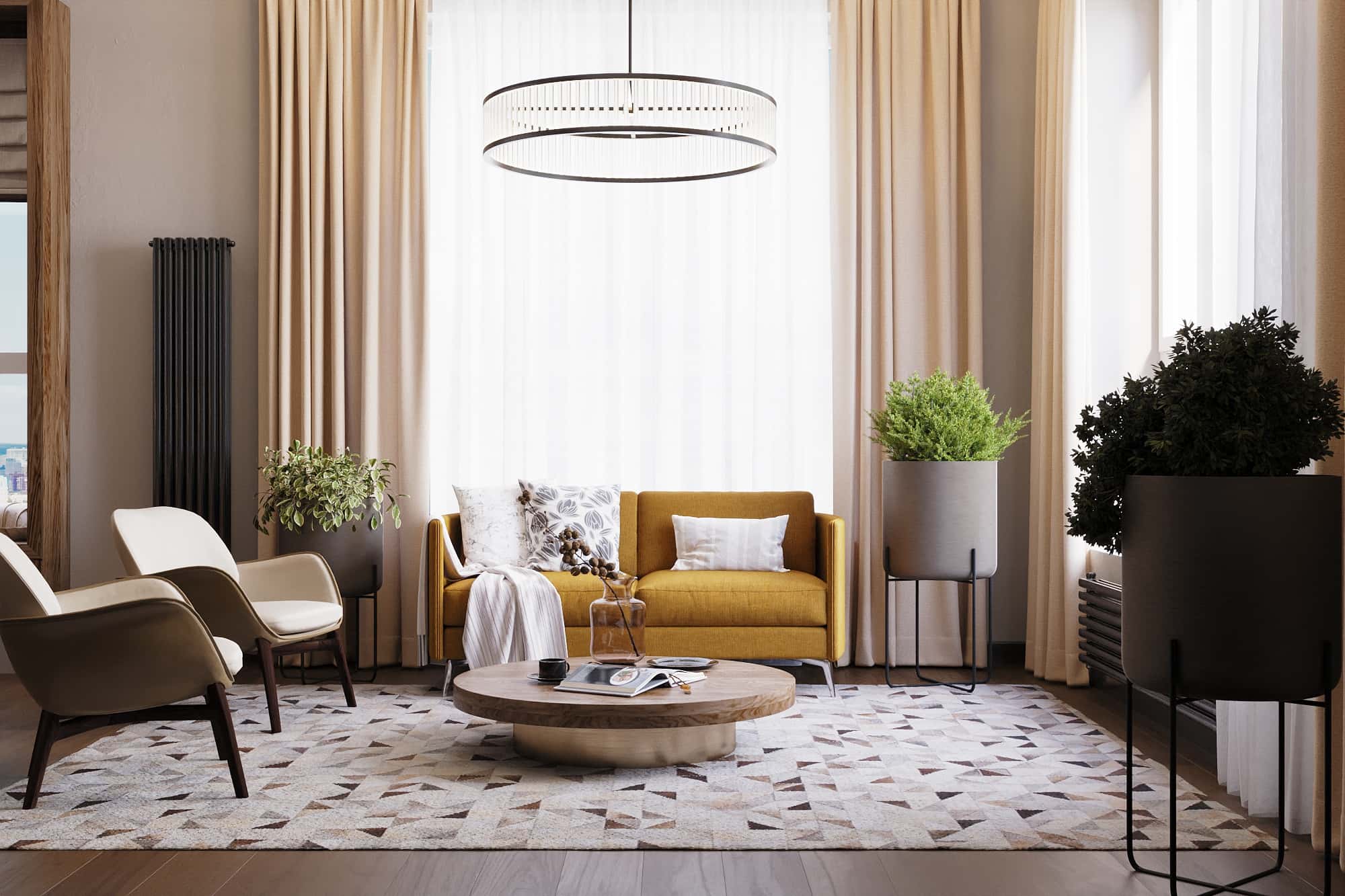 Долговечные природные материалы, теплая осенняя колористика, современные силуэты — после ремонта под ключ эта квартира, где живет креативная семейная пара с милым французским бульдогом, выглядит необыкновенно уютной. Горчичные и травянисто-зеленые акценты прекрасно вписываются в легкую бежевую палитру, добавляя обстановке выразительности.