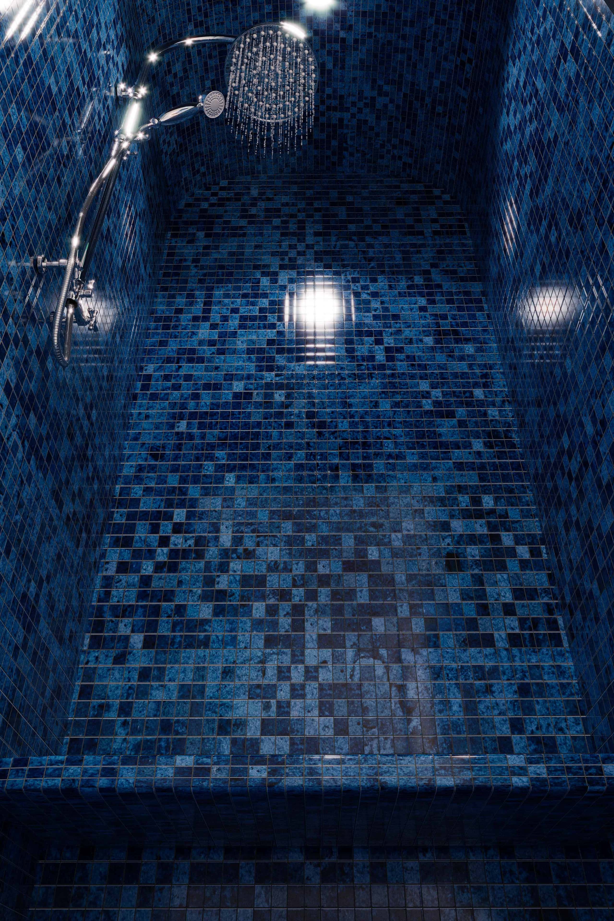 Лаконичность и элегантность интерьера квартиры в стиле неоклассика на фото обеспечивает сочетание строгих силуэтов мебели и премиальной отделки: плитки под оникс, паркетной доски, деревянных панелей. Роскоши интерьеру добавили оригинальные декораторские находки: книжный стеллаж с состаренными зеркалами на задней стенке, мягкая мебель с серо-голубой обивкой из эффектной замши.