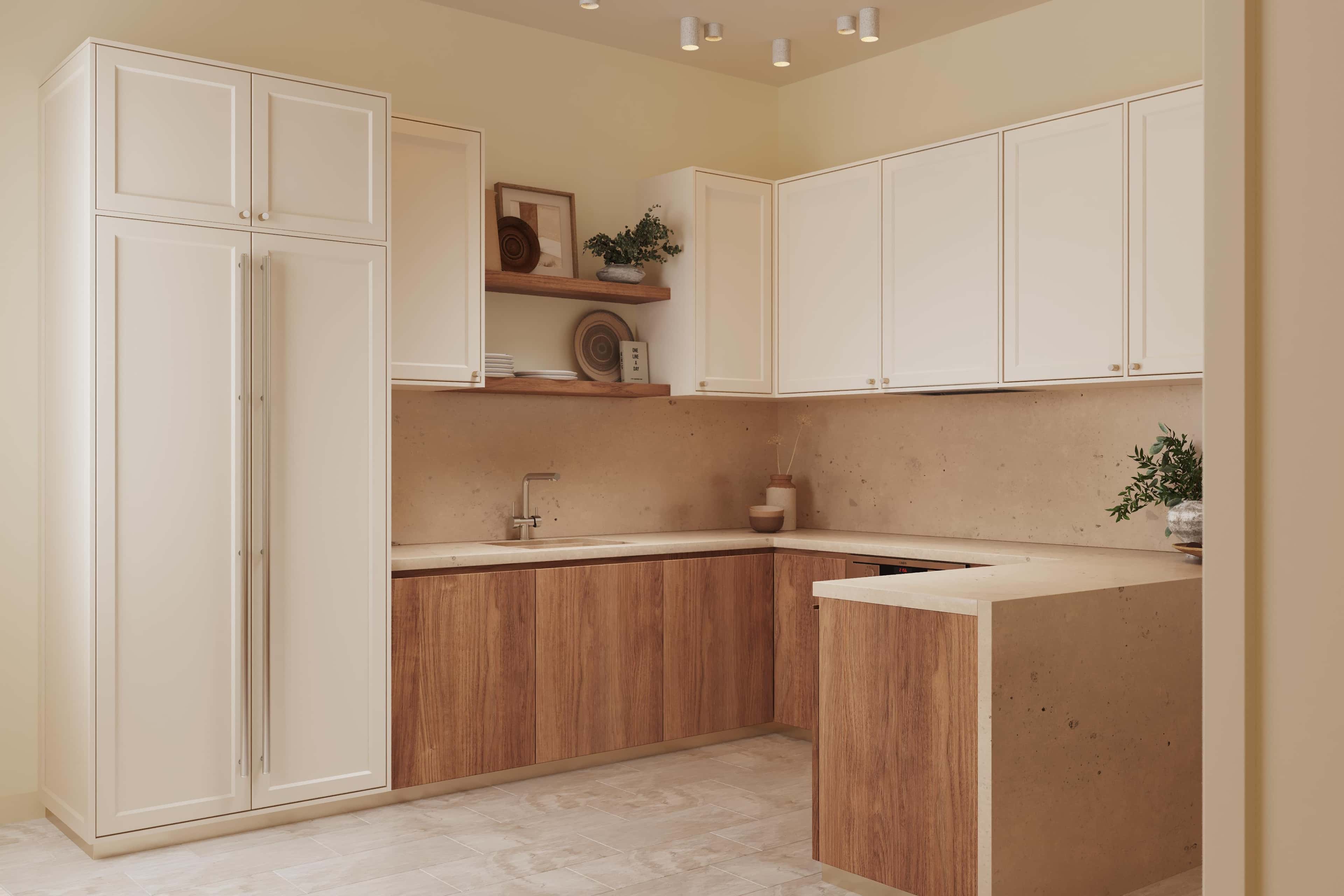 1. Кухонная зона с акцентной стеной