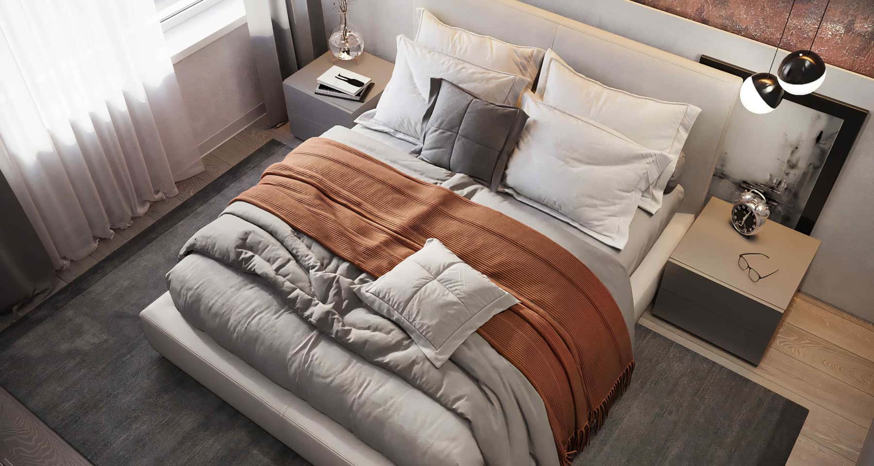 Для интерьера спальни в современном стиле характерны лаконичная отделка, простота линий и минимализм в декоре. Современные спальни часто почти монохромны, предпочтения отдаются нейтральным бежевым и серым тонам, которые могут разбавляться одним-двумя яркими акцентами.