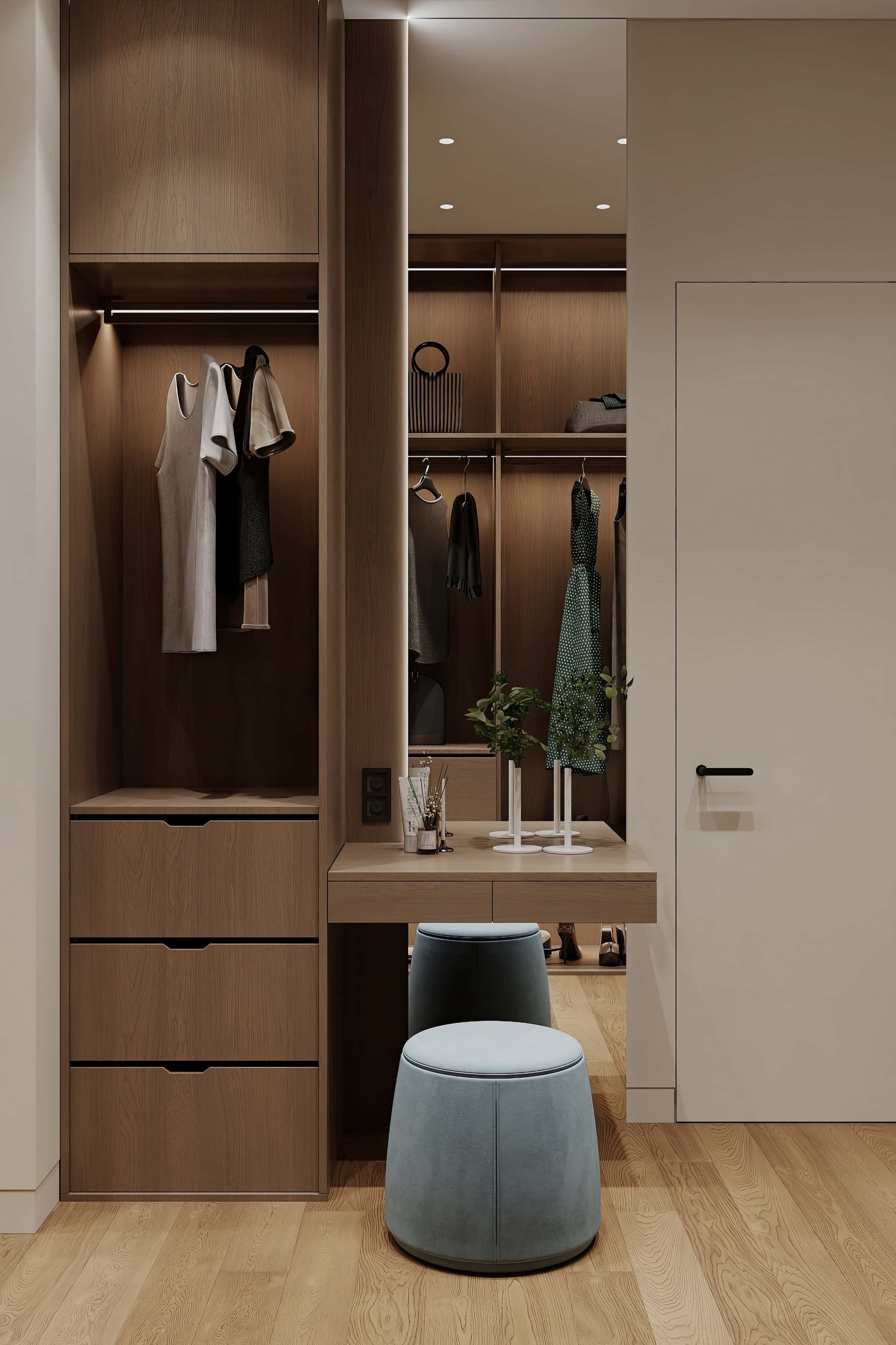 Благородная палитра с ароматом эспрессо, изящные молдинги и натуральное дерево — интерьер квартиры в ЖК iLove реализован в стиле современная классика. Основой концепции стали теплые кофейные и шоколадные оттенки, которые в сочетании со светлой отделкой стен создают атмосферу уюта и респектабельности. Главным декоративным акцентом выступает сложная игра фактур: матовый текстиль мебели контрастирует с глянцевыми поверхностями и стеклянными элементами, подчеркивая архитектурную чистоту линий и изысканный вкус владельцев.