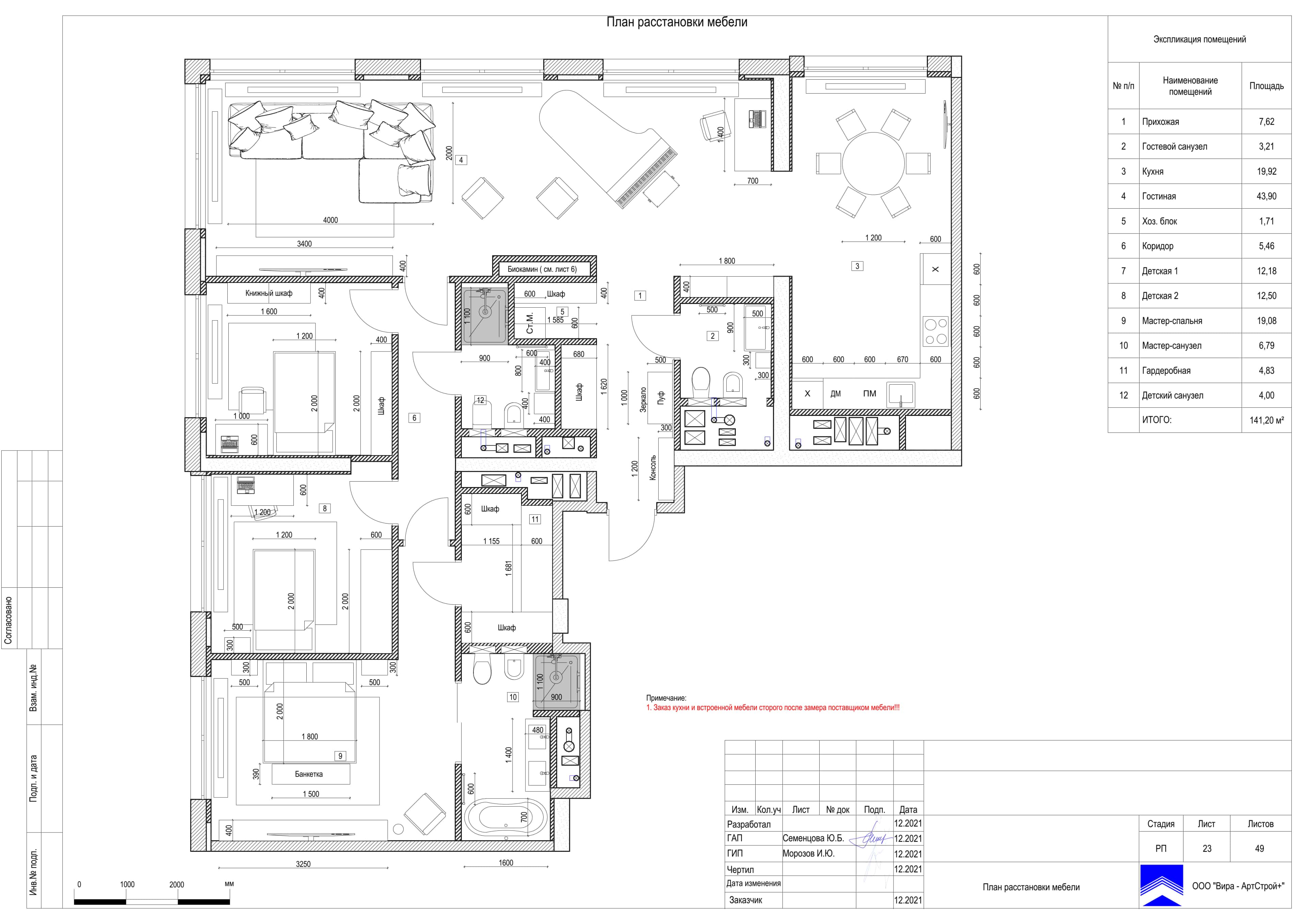 Включает все работы + материалы + сантехника + свет + встроенная мебель + двери и т.д.