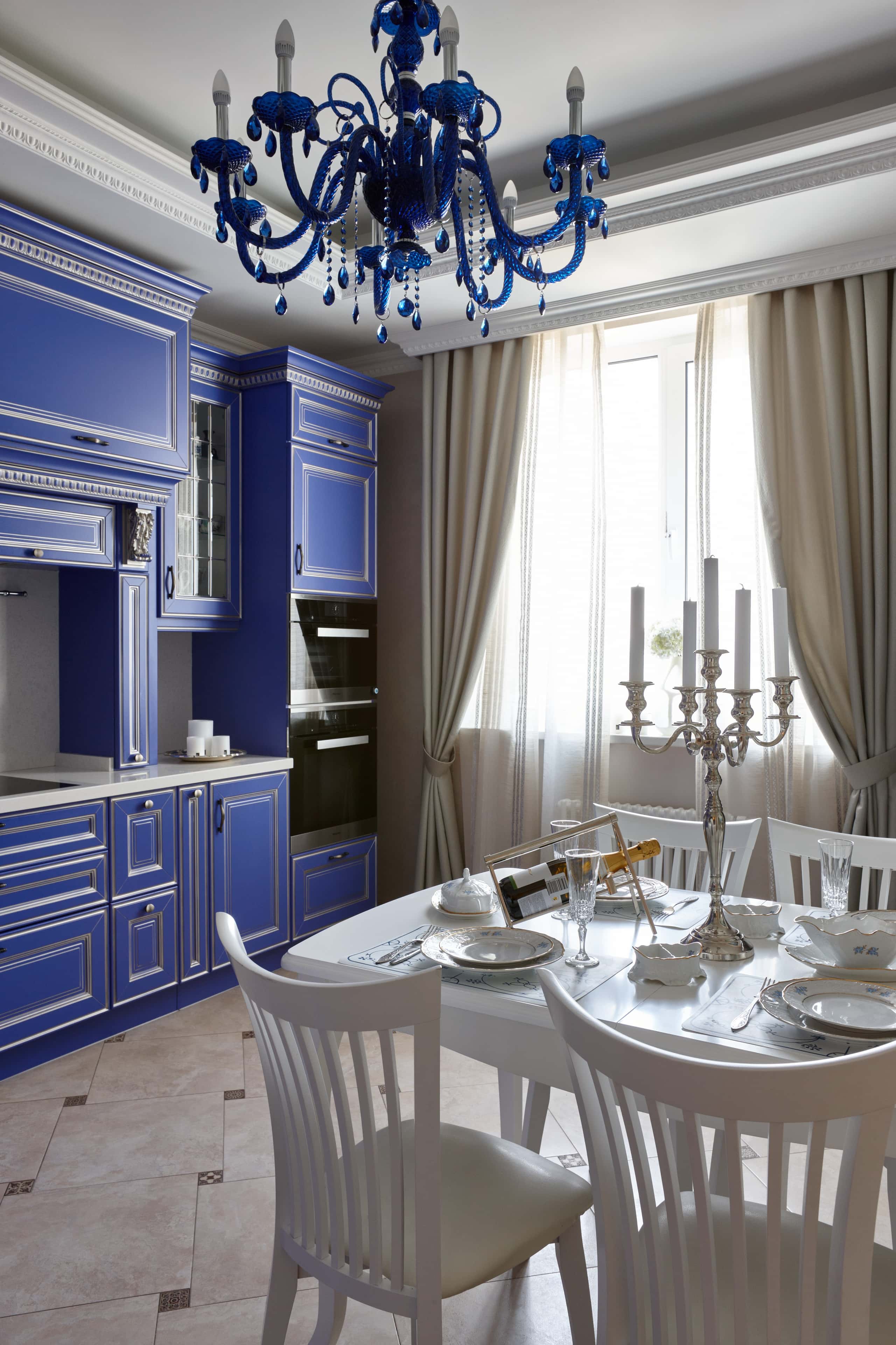 Светлые тона высококачественной отделки и строгие геометрические формы дизайнерской мебели — такой прием позволит создать ощущение визуального простора и наполнить пространство воздухом. А расцветить интерьер поможет яркая колористическая пара синий + коричневый.