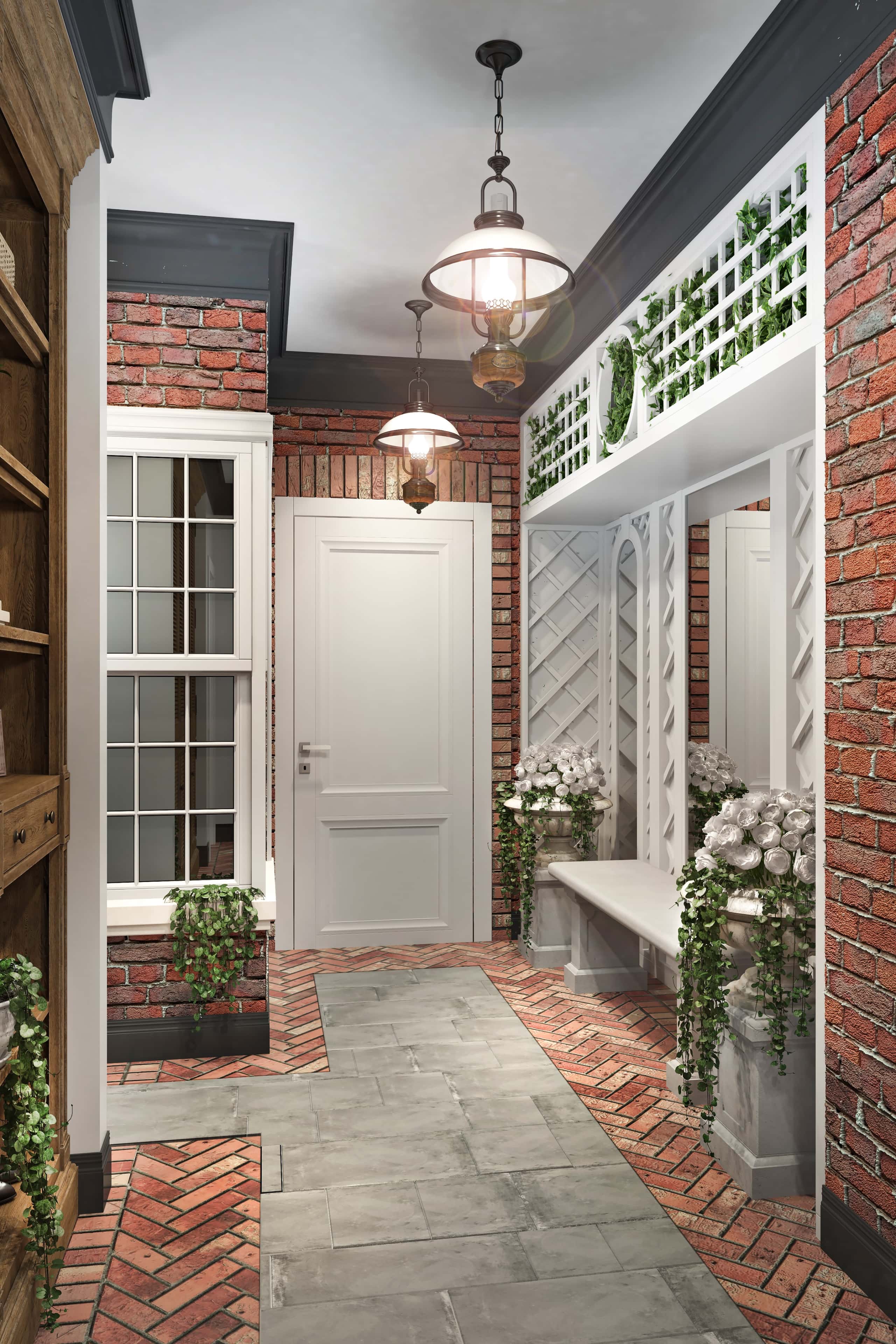 Белые двери с неоклассической раскладкой и панели буазери хорошо сочетаются с красным винтажным кирпичом. И этот «дуэт» дизайнеры часто используют в современных проектах, чтобы создать динамичную обстановку c лофтовым шармом.