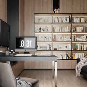 Райский уголок. Дизайн и ремонт загородного дома 350м2 в КП Пятница клаб в современном стиле. 2 этаж Кабинет, фото 01
