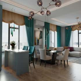 Объятия моря. Дизайн и ремонт квартиры 91м2 ЖК Событие в современном эко-стиле. Кухня-гостиная, фото 01