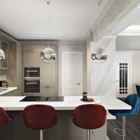 Фотографии дизайна интерьера кухонь-столовых в стиле современной классики