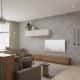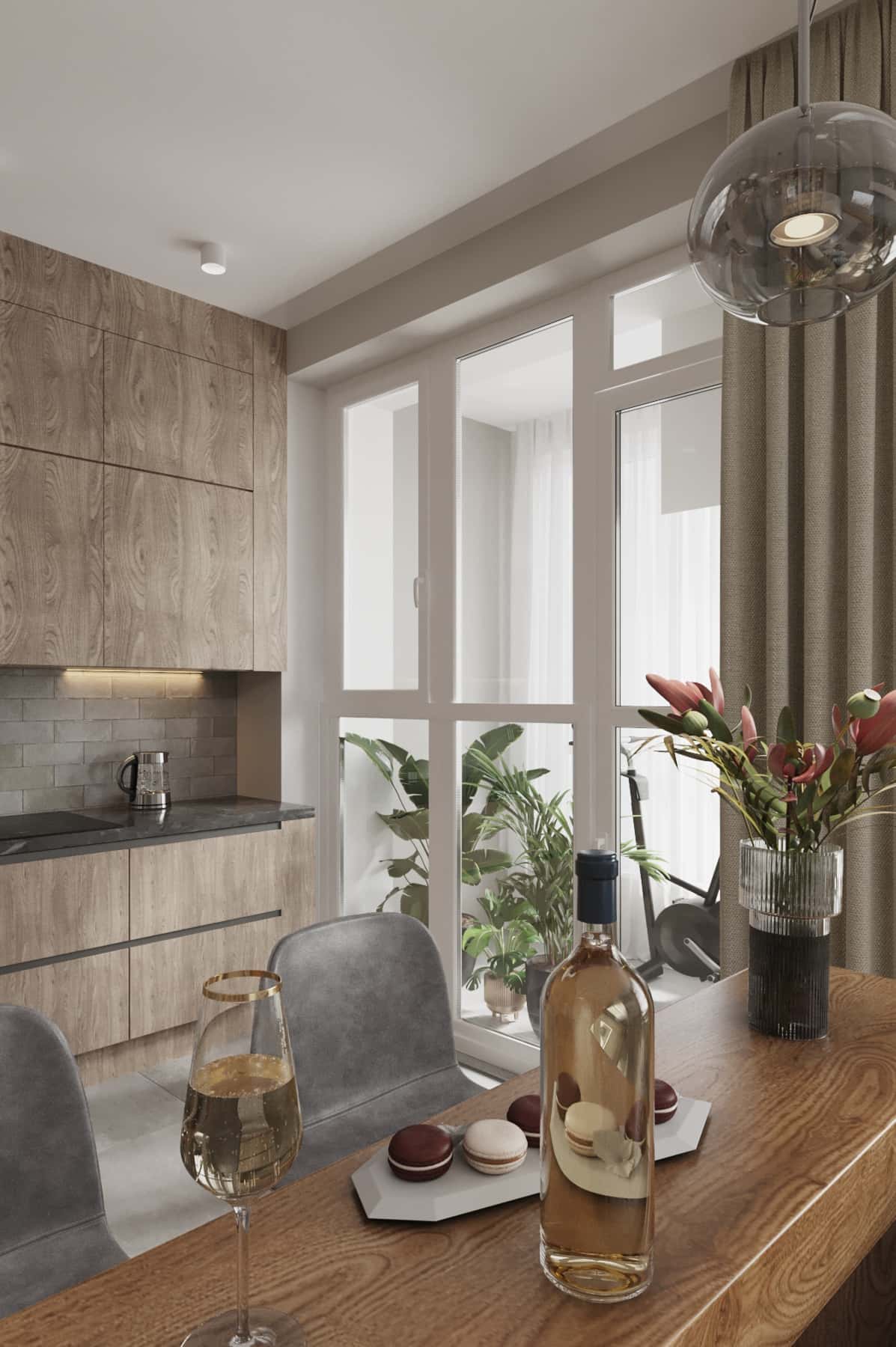 Оформление интерьера кухни-гостиной трехкомнатной квартиры в светло серый цвет в современном стиле. Фото № 62622.