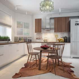 Фотографии дизайна интерьера кухонь трехкомнатных квартир в скандинавском стиле. Фото № 52151