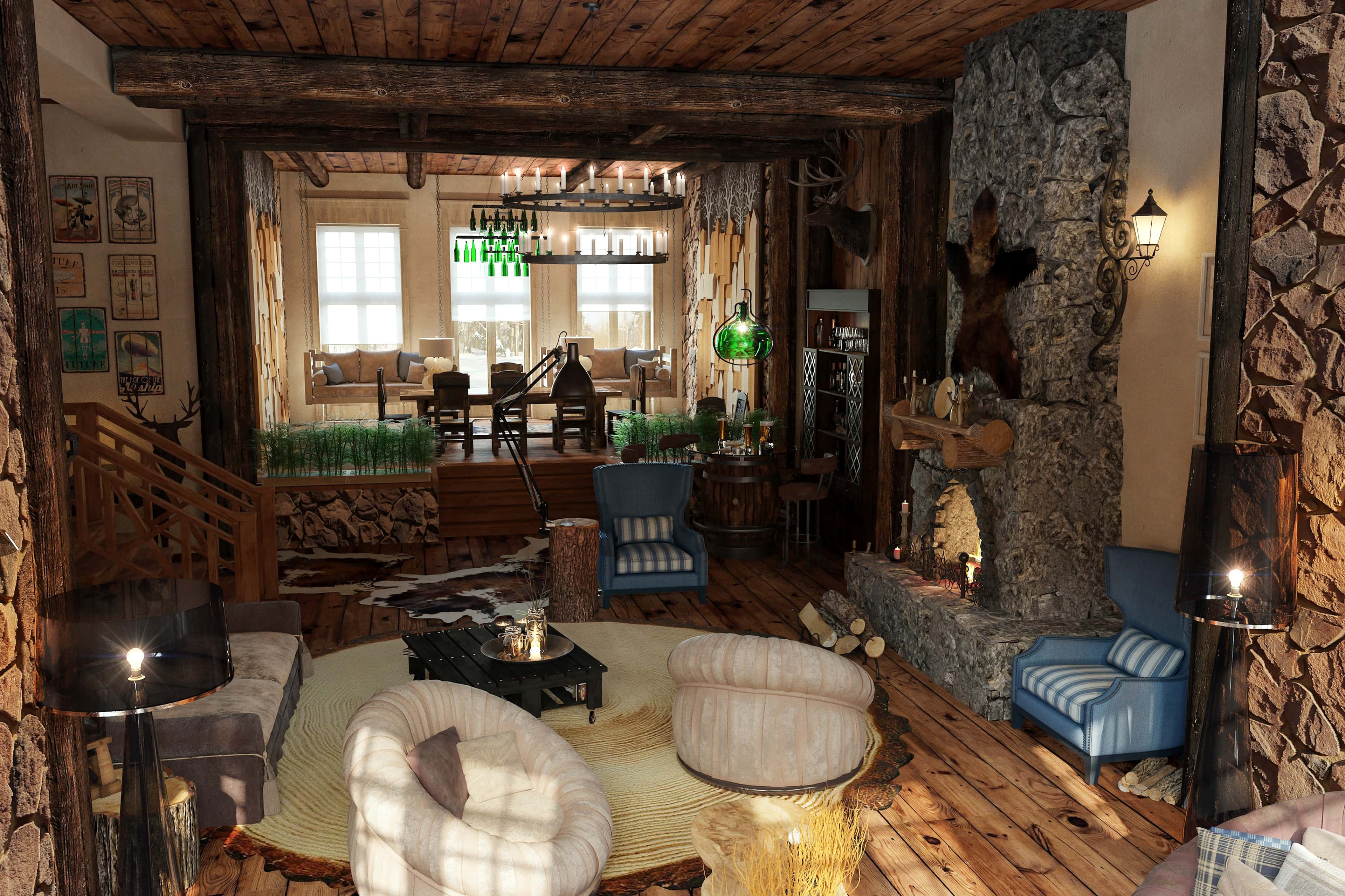Оформление интерьера винного погреба, гостевой комнаты, гостиной в стиле шале. Фото № 49292.
