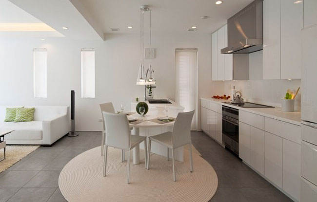 Гостиная – светлая и чистая, спальня – место отдыха. Оформление кухни, ванной комнаты, офиса – в любом из этих помещений стиль дзен также может быть задействован.