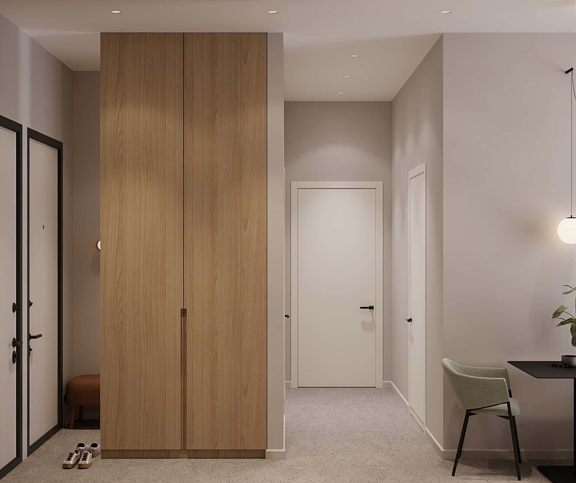 Интерьер прихожей лаконичный, при его создании мы вдохновлялись японской эстетикой: минимум деталей — максимум смысла.