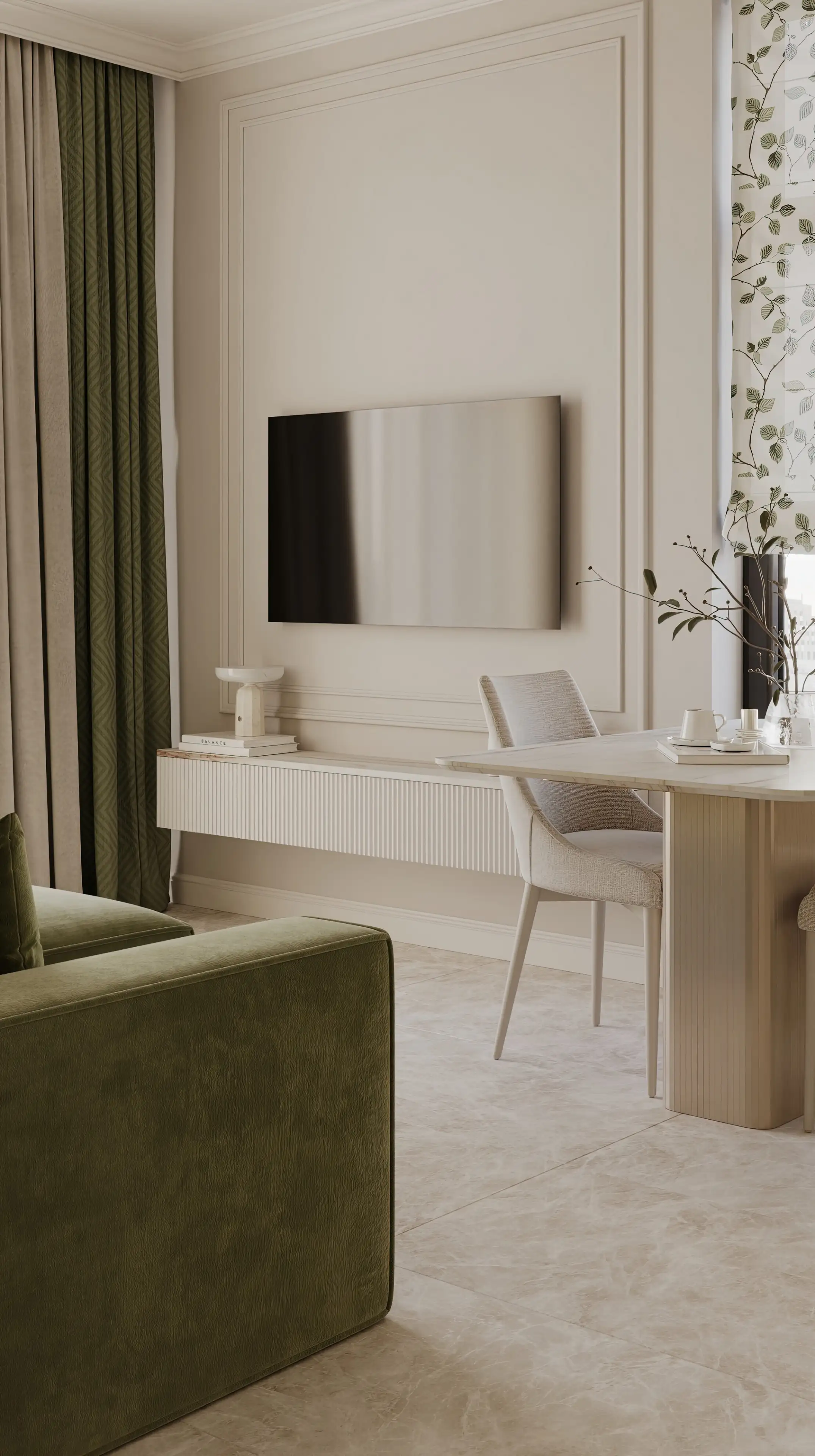 Мы соединили века: там, где стены говорят на языке древних архитекторов, технологии отвечают на языке программирования. За изящными молдингами скрывается умный дом, а античные пропорции служат рамкой для цифровой реальности. Здесь каждая комната стала многофункциональным хабом: в спальне можно не только отдыхать, но и работать, кабинет трансформируется в спальную зону, а в гостиной можно как проводить мозговые штурмы, так и развлекаться с питомцами. Этот проект доказывает, что неоклассика может быть невероятно гибкой и отлично подходит для современного ритма жизни.