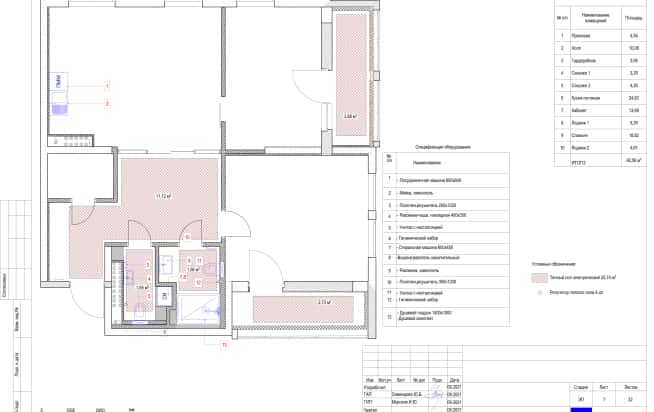 В данной квартире заказчица планирует проводить много времени, работать, принимать гостей, поэтому здесь предусмотрели отдельную комнату — кабинет, который при необходимости превращается в гостевую спальню. Также в квартире предусмотрена продуманная система вентиляции и кондиционирования.